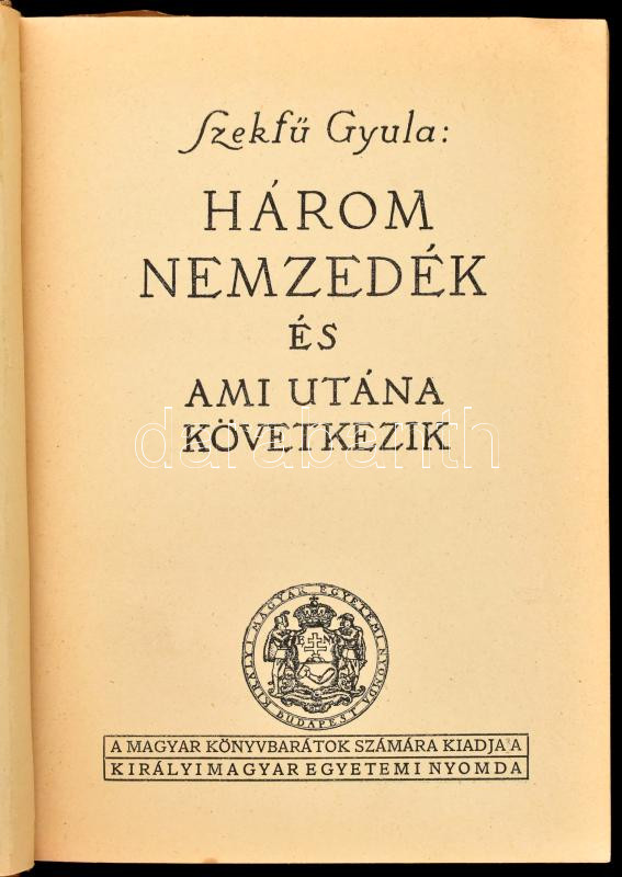 Szekfű Gyula: Három nemzedék és ami utána következik. Bp., [1935], Kir... https://www.darabanth.com/en/438-Online-auction/438.0/Books/Books-History~1000011/Szekfu-Gyula-Harom-nemzedek-es-ami-utana-kovetkezik-Bp-1935-Kir-M-Egyetemi-Nyomda-51~II2864509