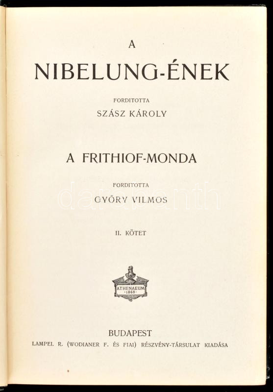 A Nibelung-ének és a Frithiof-monda I-II. köt. Ford.: Szász Károly, és... https://www.darabanth.com/en/438-Online-auction/438.0/Books/Books-Other-rarities~1000027/A-Nibelung-enek-es-a-Frithiof-monda-I-II-kot-Ford-Szasz-Karoly-es-Gyory-Vilmos-Remekir~II2857814