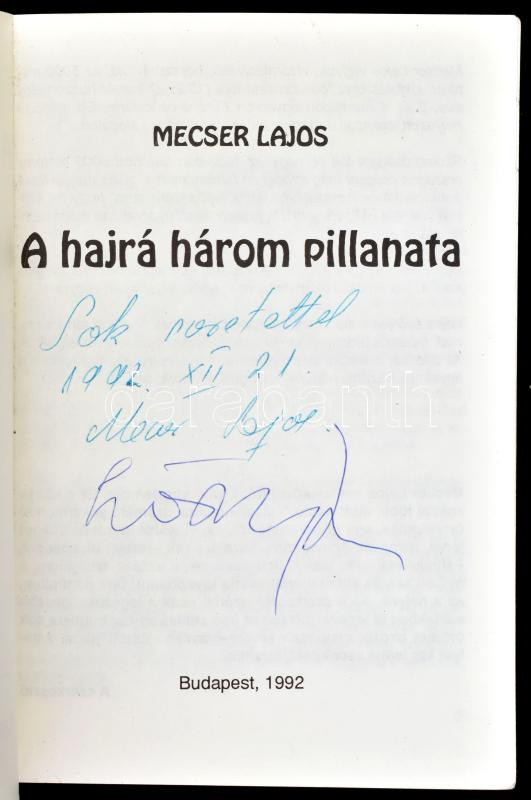 Mecser Lajos: A hajrá három pillanata. Miért - kiért fut a hosszútávfu... https://www.darabanth.com/en/438-Online-auction/438.0/Books/Books-Sports-Chess-Alpinism~1000009/Mecser-Lajos-A-hajra-harom-pillanata-Miert-kiert-fut-a-hosszutavfuto-Bp-1992-VIVA-Fe~II2860700