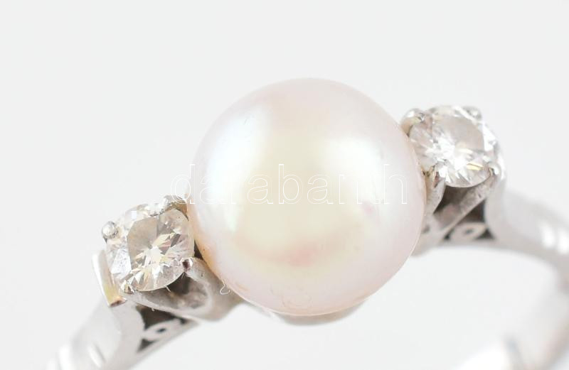 14K fehérarany gyűrű tenyésztett gyönggyel és 2 db brillel (ca 0,02ct)...