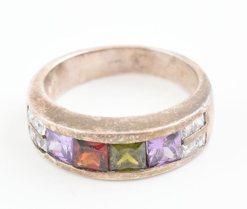 Ezüst (Ag) gyűrű kőékítéssel, jelzett, méret: 55, bruttó: 5,5 g