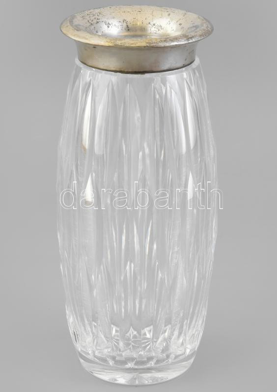 Ezüst (Ag) peremű kristály váza, jelzett, kis sérüléssel. 22 cm