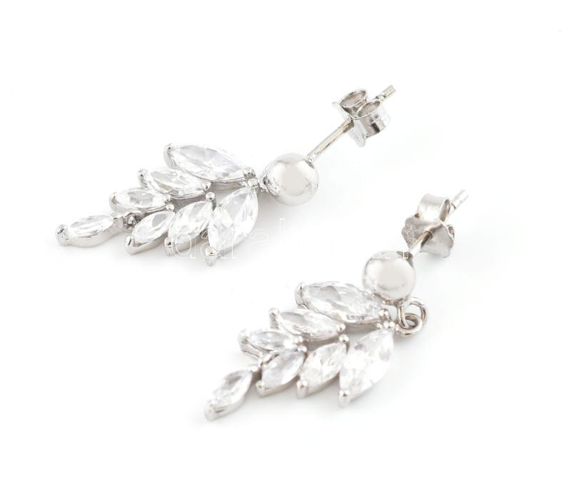 Ezüst(Ag) leveles, köves fülbevalópár, jelzett, h: 3 cm, bruttó: 4,3 g