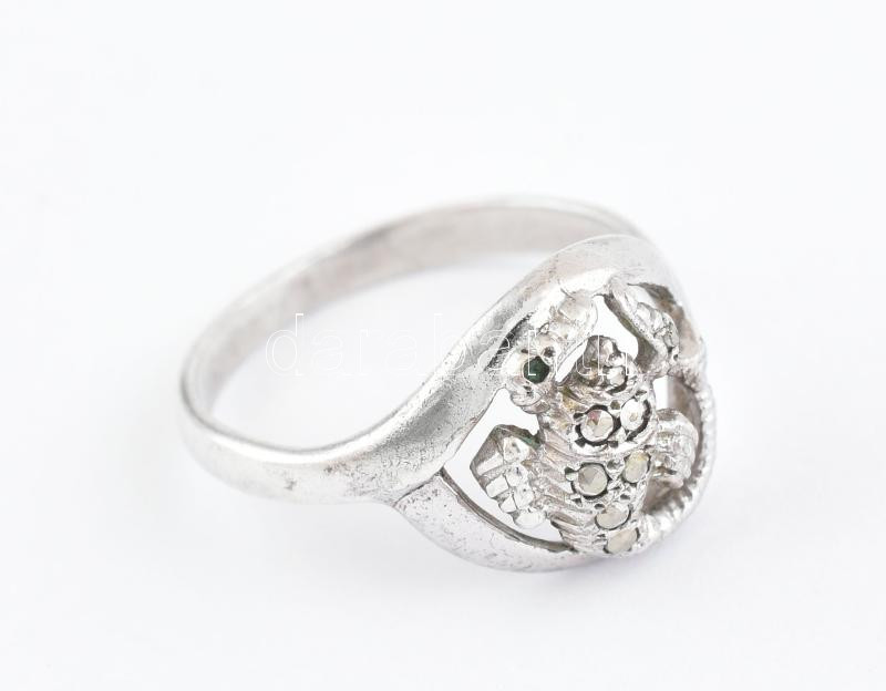 Ezüst(Ag) markazitos, rákos gyűrű, jelzett, méret: 54, bruttó: 2,7 g