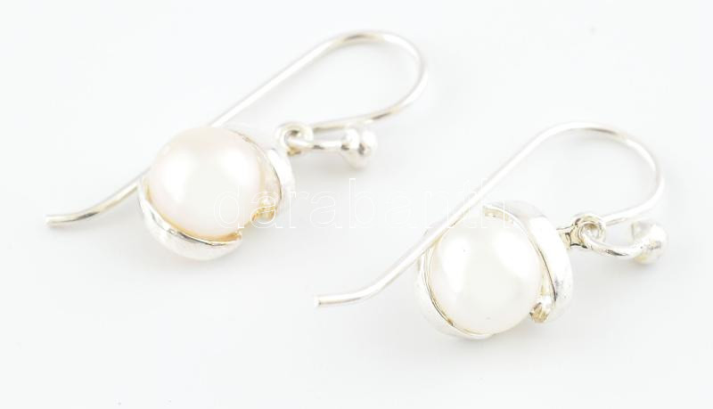 Ezüst(Ag) tenyésztett gyöngyös fülbevalópár, jelzett, h: 1,5 cm, brutt...