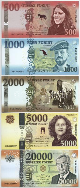 2018. "Soros pénz" 500Ft + 1000Ft + 2000Ft + 5000Ft + 20.000Ft fantázia bankjegy T:I