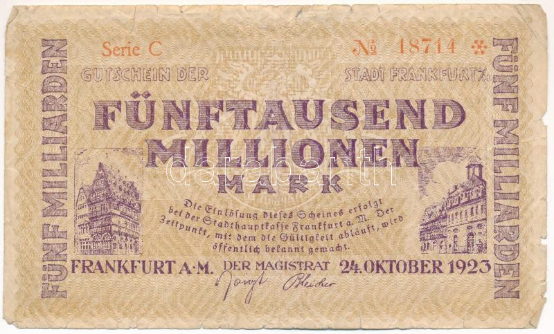 Németország / Weimari Köztársaság / Frankfurt 1923. 5.000.000.000M T:V...
