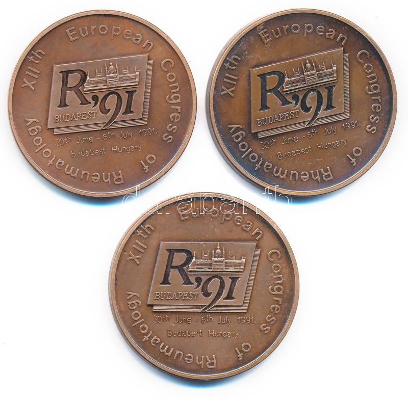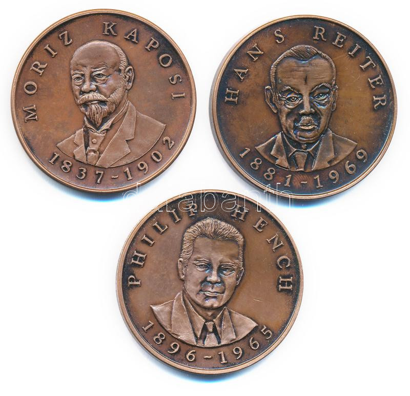 1991. 3xklf "XII. Európai Reumatológiai Kongresszus" kétoldalas bronz emlékérem "Moriz Kaposi 1837-1902","Hans Reiter 1881-1969","Philip Hench 1896-1965" (43mm) T:1