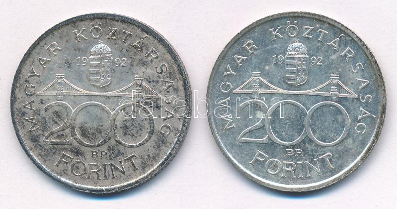 1992. 200Ft Ag "MNB" (2x) T:AU,XF patina