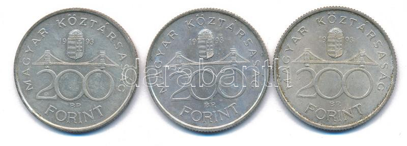 1993. 200Ft Ag "MNB" (3x) T:AU patina Adamo F13