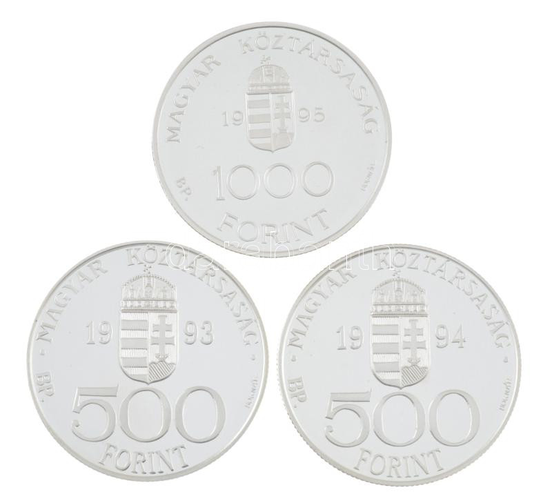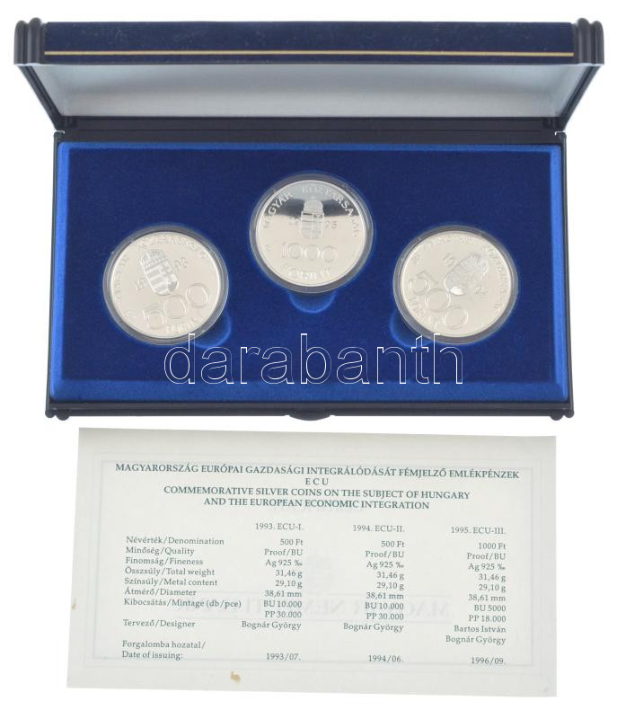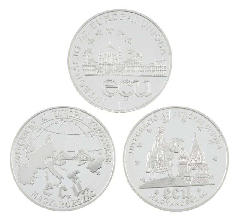 1993. 500Ft Ag "Integráció Az Európai Közösségbe" + 1994. 500Ft Ag "Integráció az Európai Unióba" + 1995. 1000Ft Ag "Integráció az EU-ba - ECU". Az érmék közös tanúsÃtvánnyal, dÃsztokban T:PP