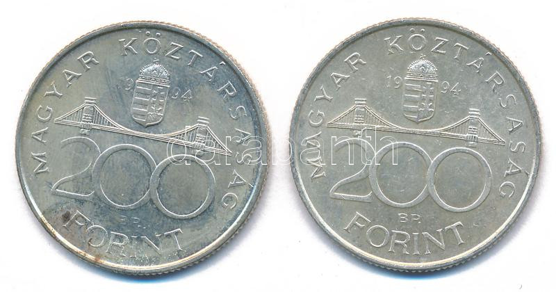 1994. 200Ft Ag "Deák" (2x) T:AU,XF patina