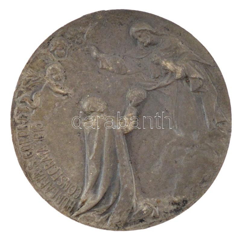 Description: 1915. "Hungaria S. Cordi J Consecrata 1915 / Hungaria B.M.V. Devota 1038" Zn medál Szt. István és Ferenc József országfelajánlási jelenetével (29mm) T:XF