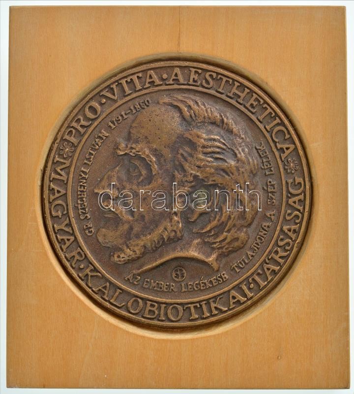 Description: 1991. "PRO VITA AESTHETICA - Magyar Kalobiotikai Társaság - Gr. Széchenyi István 1791-1860 - Az ember legékesb tulajdona a szép lélek" egyoldalas, öntött Br plakett, (81mm) fa alapon T:1-