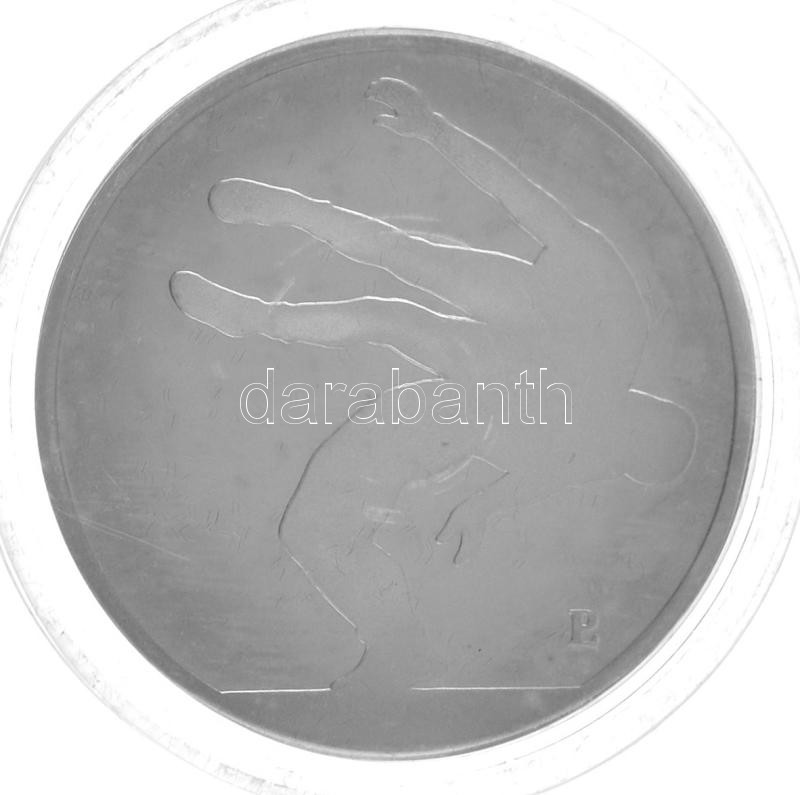 1990. "Magyar Csapat 1992 - CITIVS, ALTIVS, FORTIVS / Birkózás" a Barcelonában rendezett nyári Olimpia alkalmából készült, jelzetlen Ag emlékérem kapszulában, sorszámozott "3473" tanúsítvánnyal, eredeti dísztokban. Szign.: Papp László (31,5g/0,925/42,5mm) T:PP patina, apró karcok