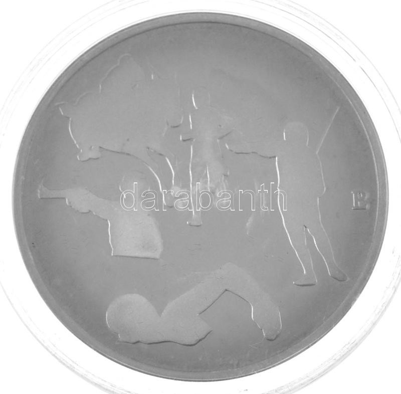 1990. "Magyar Csapat 1992 - CITIVS, ALTIVS, FORTIVS / Öttusa" a Barcelonában rendezett nyári Olimpia alkalmából készült, jelzetlen Ag emlékérem kapszulában, sorszámozott "2585" tanúsítvánnyal, eredeti dísztokban. Szign.: Papp László (31,5g/0,925/42,5mm) T:PP patina, sérült tok