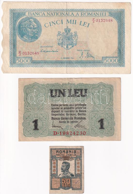 Description: Románia 1917. 50b + Románia / Német megszállás 1917. 1L + Románia 1944. 5000L T:F