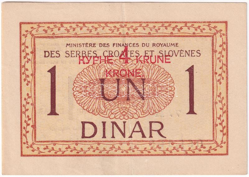 Szerb-Horvát-Szlovén Királyság 1919. 1D (2x), piros "4K" fel... https://www.darabanth.com/en/438-Online-auction/438.0/Numismatics/Worldwide-banknotes~1500013/Szerb-Horvat-Szloven-Kiralysag-1919-1D-2x-piros-4K-felulbelyegzessel-TVF-Kingdom-of-th~II2856016