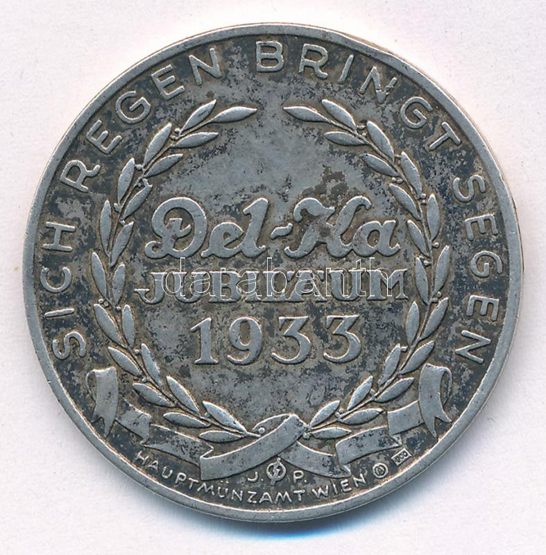Ausztria 1933. "Del-Ka 25 éves Jubileum" jelzett Ag emlékérem (16,35g/0.900/35mm) T:XF patina, ph