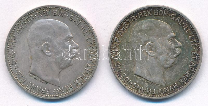 Ausztria 1912-1913. 1K Ag "Ferenc József" (2xklf) T:XF,VF patina Austria 1912-1913. 1 Corona Ag "Franz Joseph" (2xdiff) C:XF,VF patina Krause KM#2820
