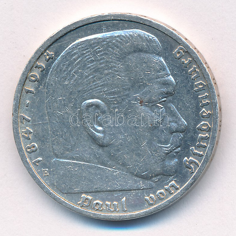 https://www.darabanth.com/en/438-Online-auction/438.0/Numismatics/Worldwide-silver-and-metal-coins~1500014/Nemet-Harmadik-Birodalom-1937E-5M-Ag-Hindenburg-TXF-kis-ph--German-Third-Reich-1937E-5-Reichsma~II2856423