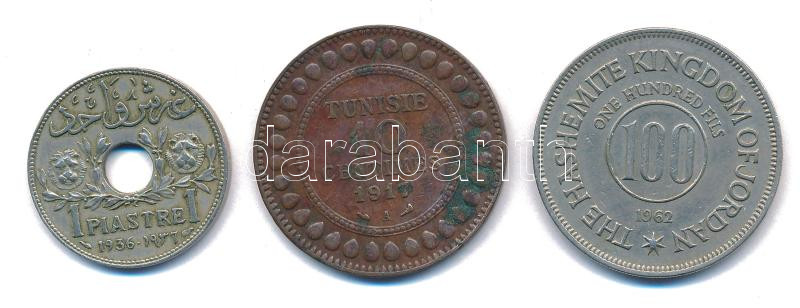 Szíria 1936. 1p Cu-Ni + Tunézia 1957A 10c bronz + Jordánia 1962. 100F Cu-Ni T:XF,VF