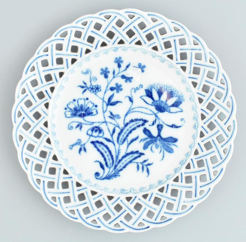 Schlaggenwald áttört tányér. Máz alatti kék festéssel jelzett, hibátla...