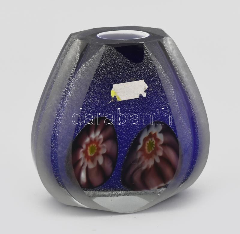 Muranoi üveg váza. Több rétegű, anyagában színezett, csiszolt, hibátlan 12 cm