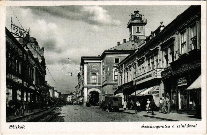 1940 Miskolc, Széchenyi utca, színház, Epstein üzlete (EK)