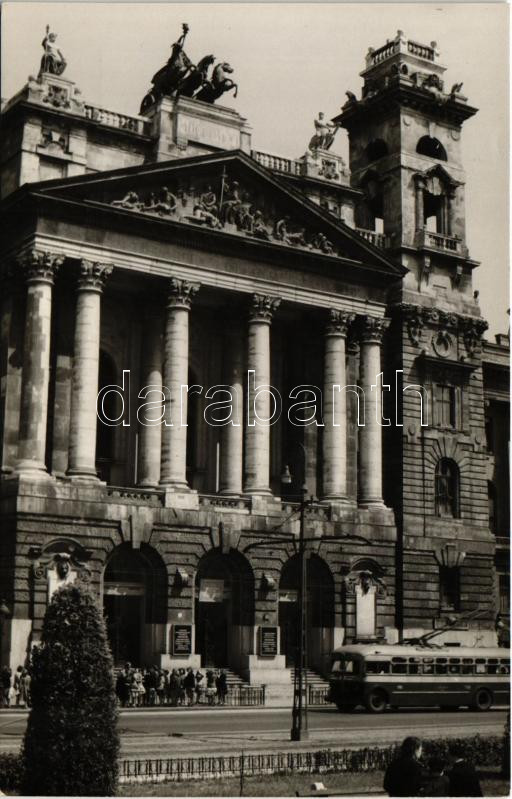 Description: Budapest V. Kossuth Lajos tér, Magyar Munkásmozgalmi Intézet (építette Hauszmann Alajos), trolibusz. Magyar Fotó, Járai Rudolf felvétele. Képzőművészeti Alap Kiadóvállalat