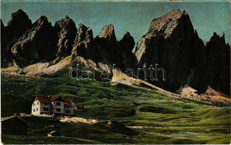 Passo Gardena, Grödnerjoch (Südtirol); Hospiz gegen Tschierspitzen / rest house, Gruppo del Cir