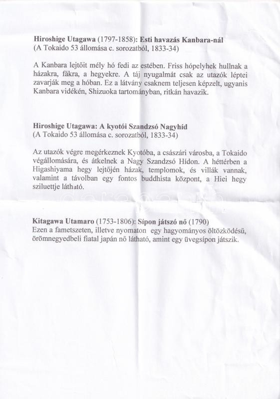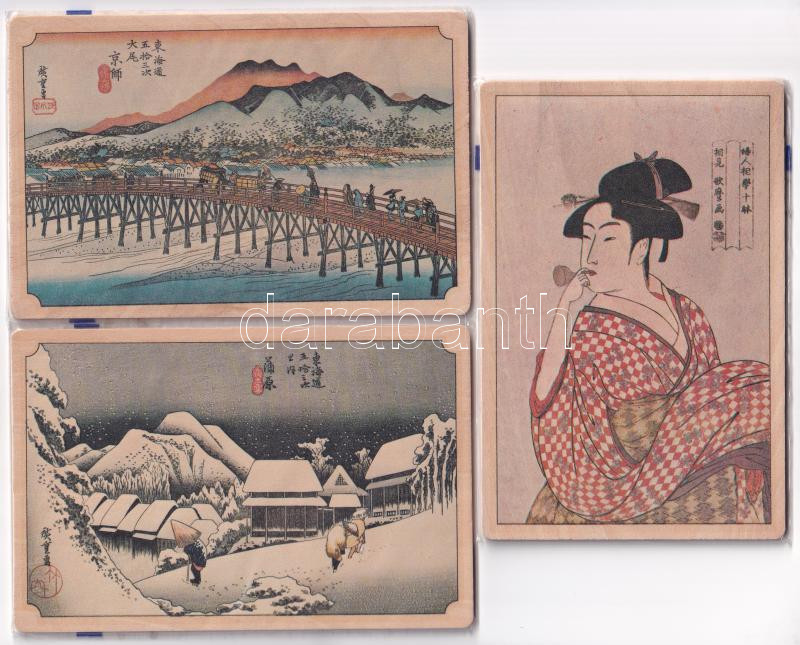 3 db MODERN japán fa művész képeslap leírással külön lapon + 4 modern ...
