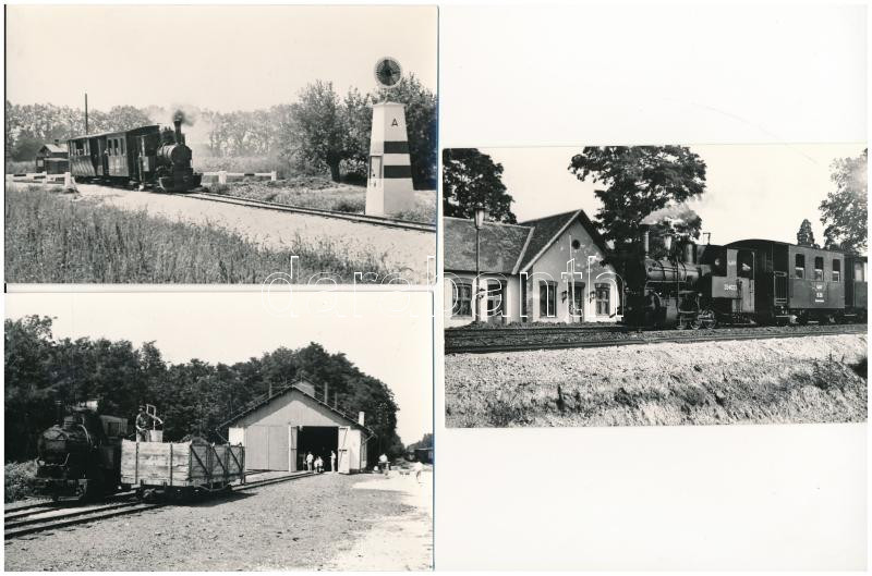 Description: 3 db MODERN magyar fekete-fehér vasúti képeslap: Nagycenki Múzeumvasút, vonatok, gőzmozdonyok / 3 modern black and white Hungarian narrow-gauge railway postcards: trains, locomotives