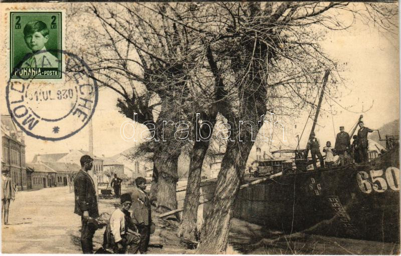1930 Orsova, Duna-part, DDSG uszály / Donauquai / quay, barge (EK)