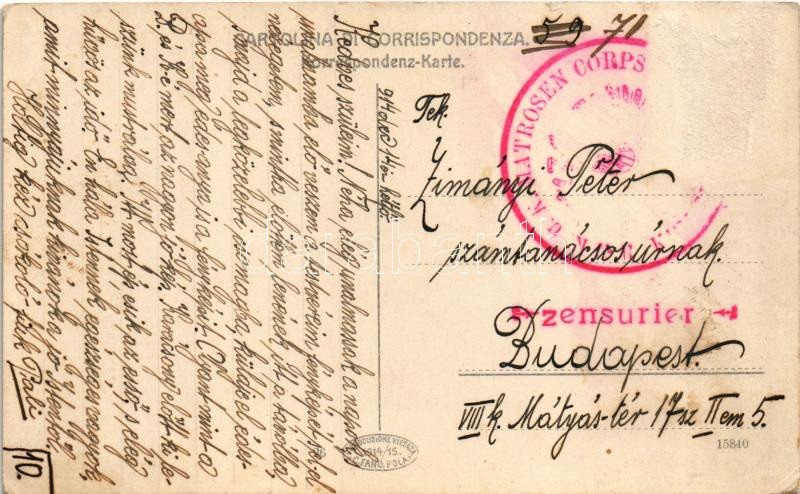 Description: 1914 Egy vasárnap délután Dalmáciában / Jedna Nedjelja popodne u Dalmaciji / K.u.K. Kriegsmarine Matrosen / WWI Austro-Hungarian Navy mariner humour art postcard, Sunday afternoon in Dalmatia. C. Fano 26. 1914/15. Pola s: Ed. Dworak + "K.u.K. Matrosen Corps ..." (Rb)