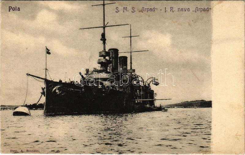 Pola, Pula; SM Schiff Árpád K.u.K. Kriegsmarine / SMS Árpád az Osztrák... https://www.darabanth.com/en/438-Online-auction/438.0/Postcards/Warships~2500051/Pola-Pula-SM-Schiff-Arpad-KuK-Kriegsmarine-SMS-Arpad-az-Osztrak-Magyar-Haditengereszet-~II2858442