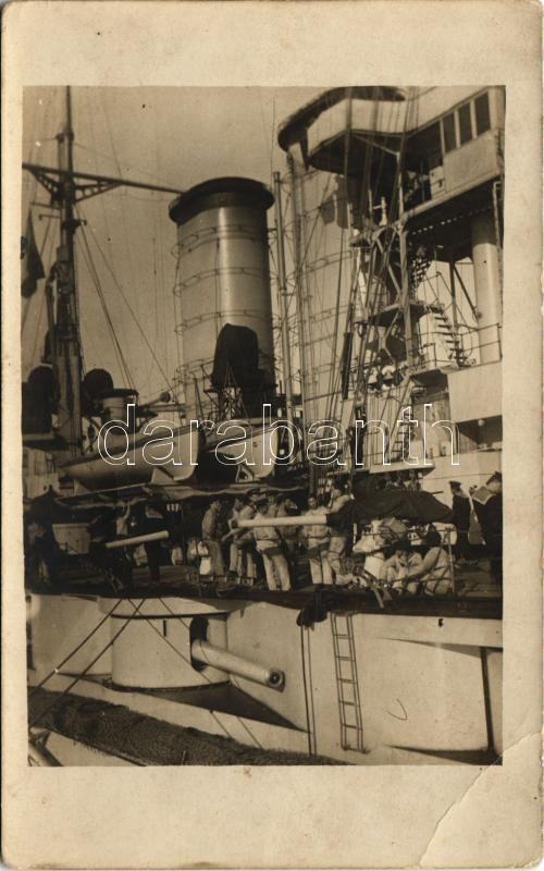 SMS Prinz Eugen az Osztrák-Magyar Haditengerészet Tegetthoff-osztályú csatahajója / K.u.K. Kriegsmarine / WWI Austro-Hungarian Navy SMS Prinz Eugen dreadnought battleship, mariners. photo (ragasztónyom / glue marks)