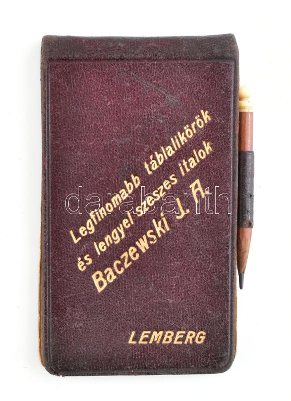 1913 Baczewski táblalikőrök bőr naptár, aranyozott, tollal, szép állapotban