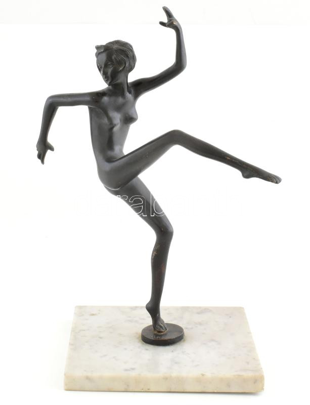 BKI jelézéssel, art deco női táncos, bronz, márvány talapzaton, m:31 cm