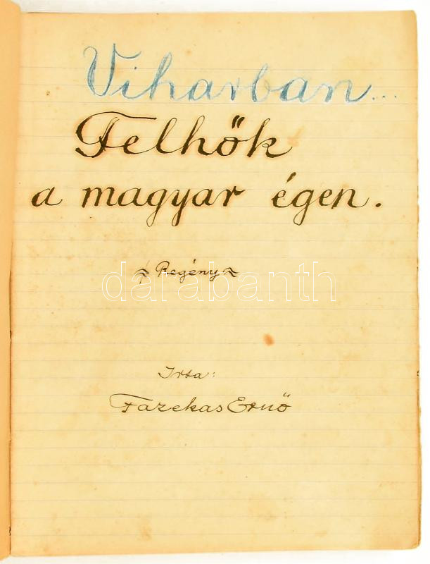 Fazekas Ernő (1899-1957): Viharban. Felhők a magyr égen c. regényének kézirata. kb 100 oldal füzetben