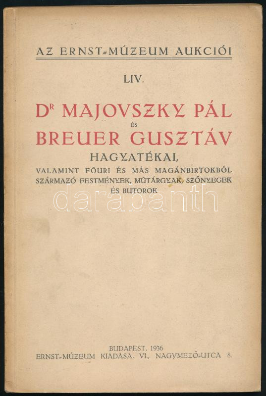 AZ Ernst Múzeum aukcióI liv: Dr. Majovszky Pál és Breuer Gusztáv hagyatékai. Bp., 1936. Kiadói papíkrötésben