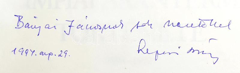 Description: Lukács László - Szepesi György: A magyar olimpiai aranyérmek története (1896-1992). Bp., 1992, Sport. Kiadói kartonált papírkötés. A könyv egyik szerzője, Szepesi György (1922-2018) sportkommentátor által DEDIKÁLT példány.