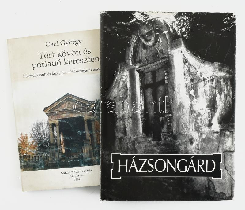 Lászlóffy Aladár - Kántor László: Házsongárd. Bp., 1989, Helikon. Gazdag képanyaggal illusztrált. Kiadói kartonált papÃrkötés, kissé kopott kiadói papÃr védÅ‘borÃtóban. + Gaal György: Tört kövön és porladó kereszten. Pusztuló múlt és fájó jelen a Házsongárdi temetÅ‘ben. Kolozsvár, 1997, Stúdium. Kiadói papÃrkötés, kissé kopott borÃtóval, térkép-melléklettel. Megjelent 1000 példányban.