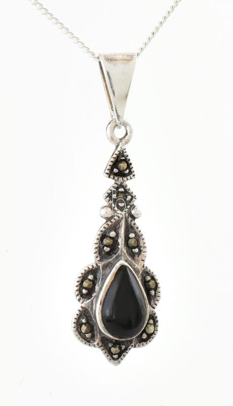 Ezüst (Ag) kővel ékített medál, láncon, jelzett, h: 40 cm, bruttó: 2,89g