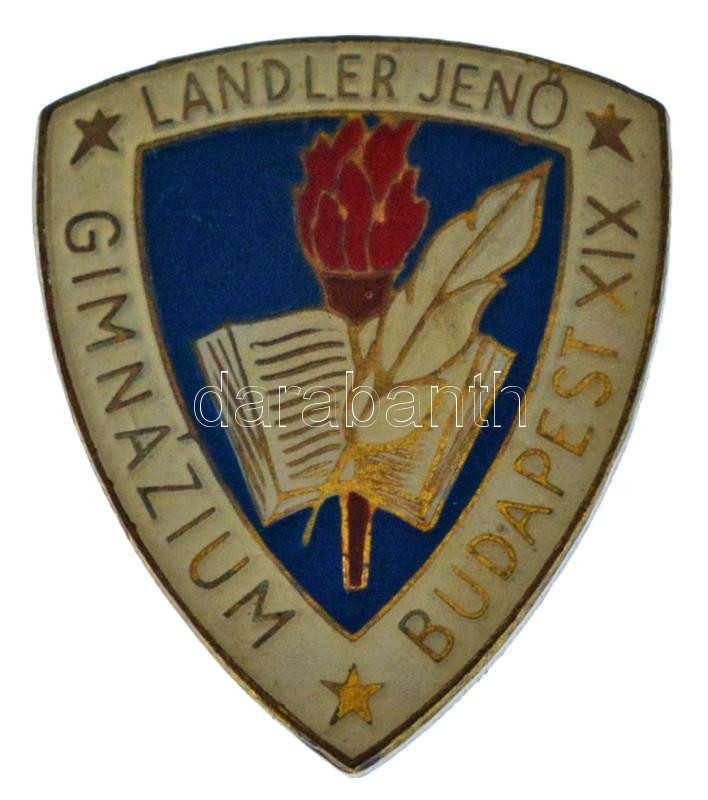 DN "Landler Jenő Gimnázium Budapest XIX" műgyantás fém iskolajelvény (~26x22mm) T:XF