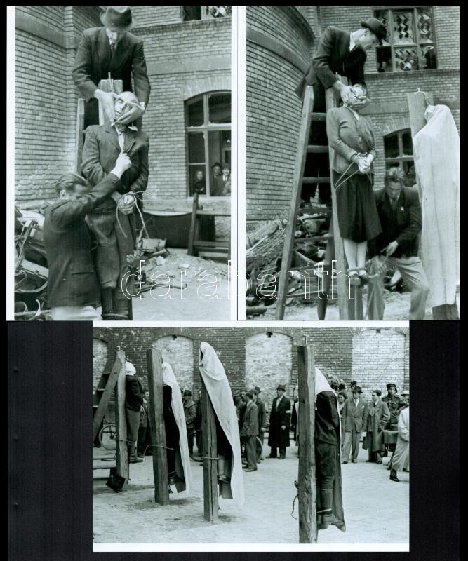 1945 Budapest, háborús bűnösök nyilvános kivégzése, Rózsa György (?-?) budapesti fotóriporter hagyatékából 3 db modern nagyítás, 21x15 cm
