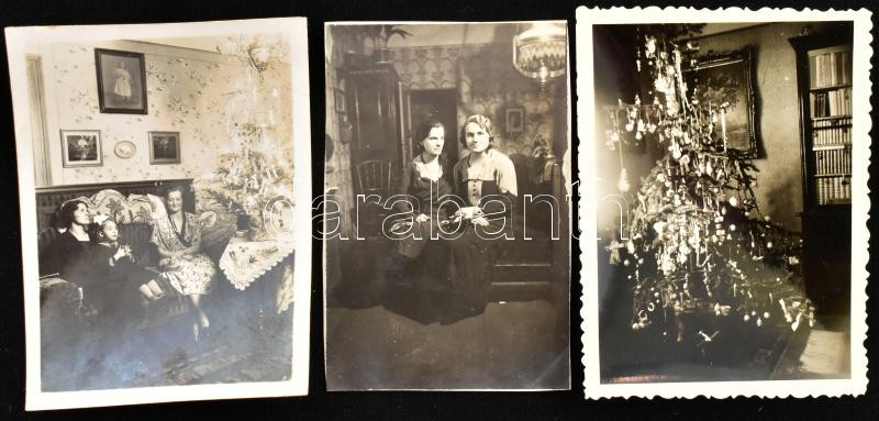 cca 1946 6 db fotó lakásbelsőkkel, enteriőrökkel, karácsonyfával, 6,5x9 cm körüli méretben