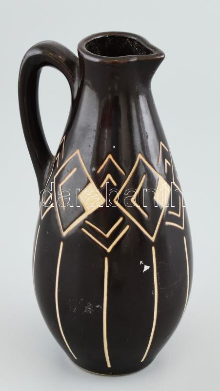 Jelzés nélkül: Fekete-fehér füles váza, kerámia, jelzés nélkül, hibátlan 20 cm