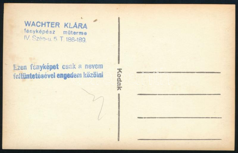 Description: Babits Mihály (1883-1941) költő, író, irodalomtörténész, műfordító portréja, Wachter Klára fényképész ceruzával jelzett fotólapja, hátoldalán pecséttel is jelzett, 8,5x13,5 cm