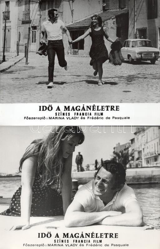 Description: cca 1989 előtt készült, "Idő a magánéletre" című francia film jelenetei és szereplői, 23 db vintage produkciós filmfotó (vitrinfotó, lobbyfotó) ezüst zselatinos fotópapíron, a használatból eredő (esetleges) kisebb hibákkal, 18x24 cm
